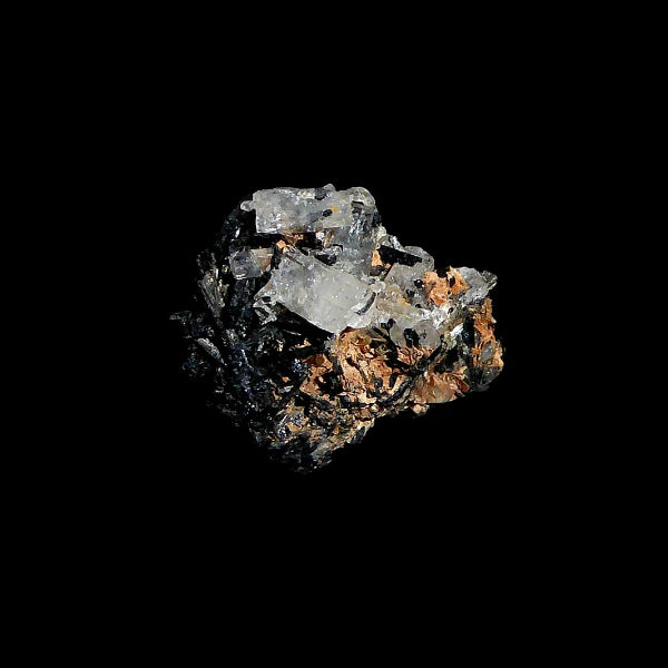 Formaciones de Aguamarina con bueno brillo y transparencia con Turmalina de color negra de brillo intenso . Mineral muy estético