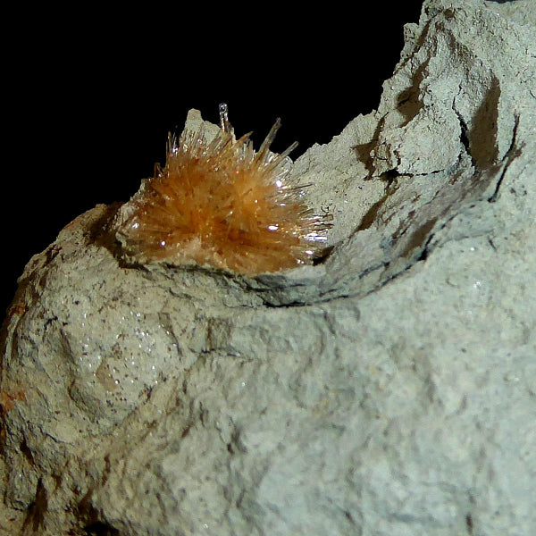 Aragonito acicular en matriz con muy buenas formaciones. Ejemplar de gran belleza con bueno color y brillo. Mineral muy estetico. Se ve colores con luz ultravioleta en 365 y 39