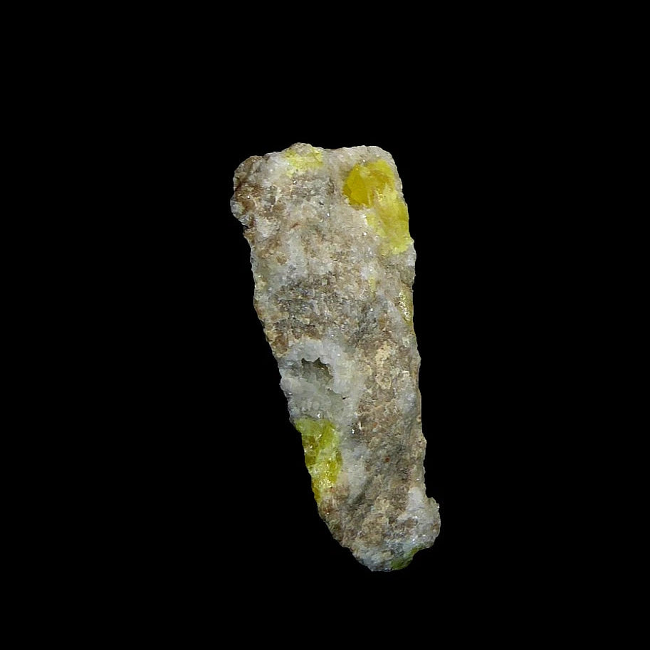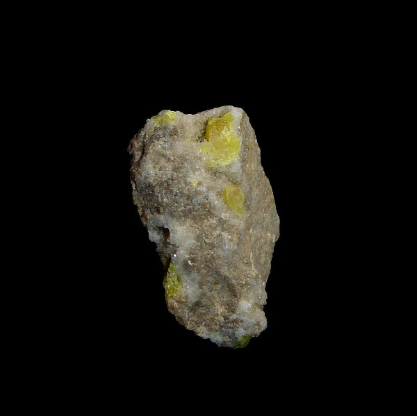 Azufre cristalizado en matriz de color amarillo con brillo intenso. Mineral muy estético