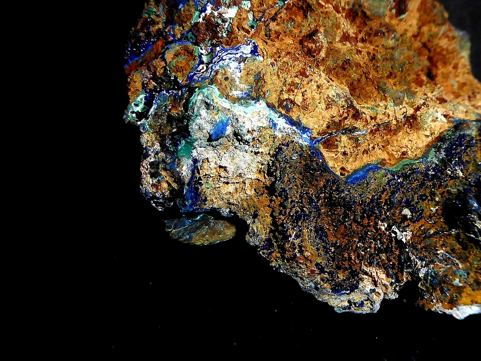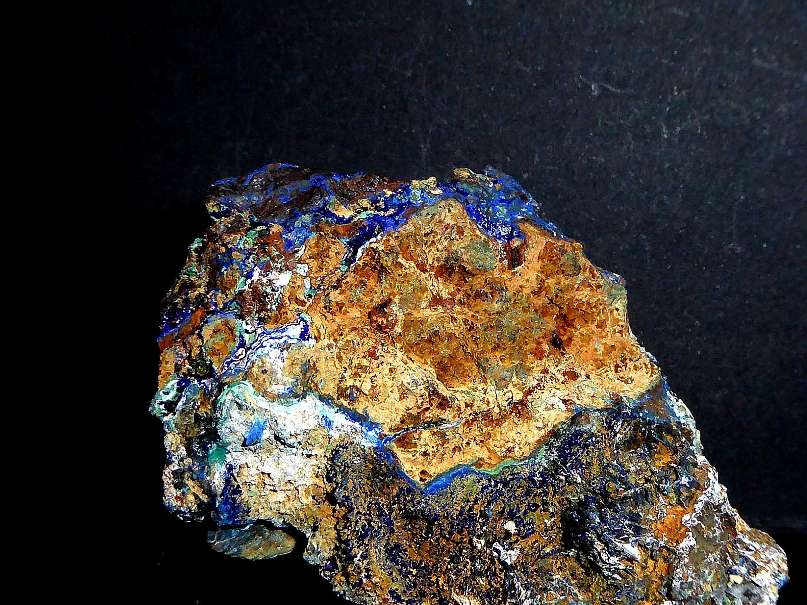 Azurita y Malaquita con increíbles formaciones con color y brillo intenso de azul / verde y adamas inclusiones blancas en matrizz. Mineral de gran calidad y de belleza