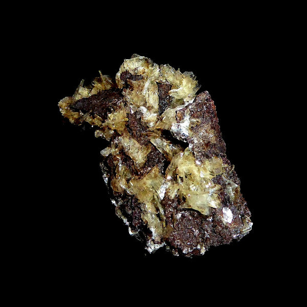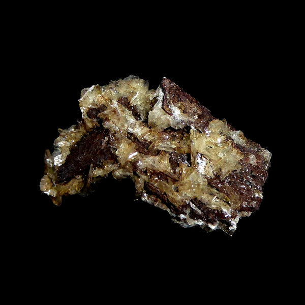Barita de color miel con formaciones únicas y perfectas en matriz con brillo intenso. Mineral muy estético de grande calidad