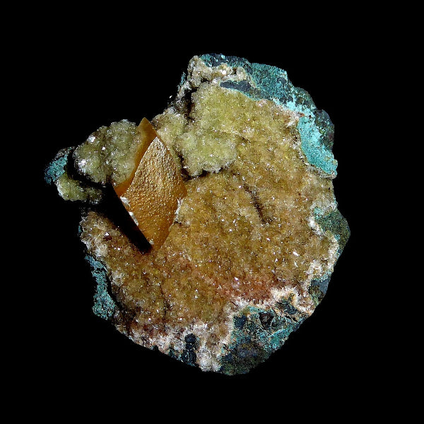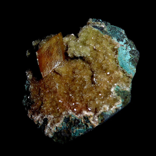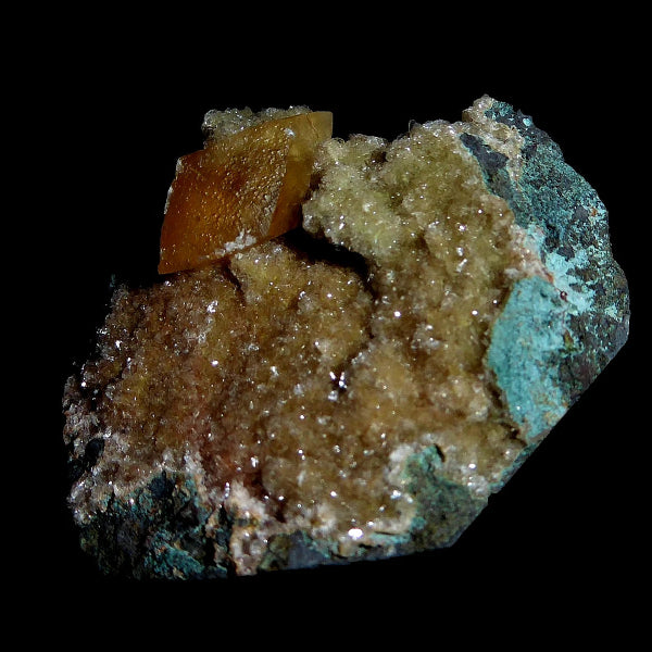 Cristal perfecto de Calcita con color miel en matriz con color y brillo intenso. Mineral muy estético