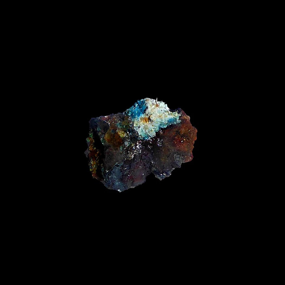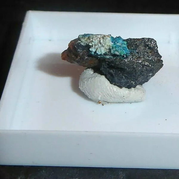Crisocola y Aragonito con buena formación con color Azul y blanco en matriz. Mineral muy estético. Incluí caja de acrilico