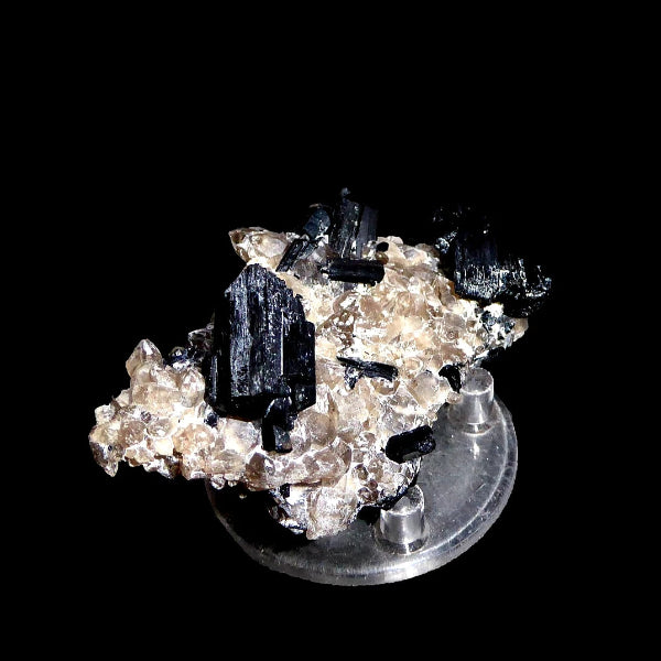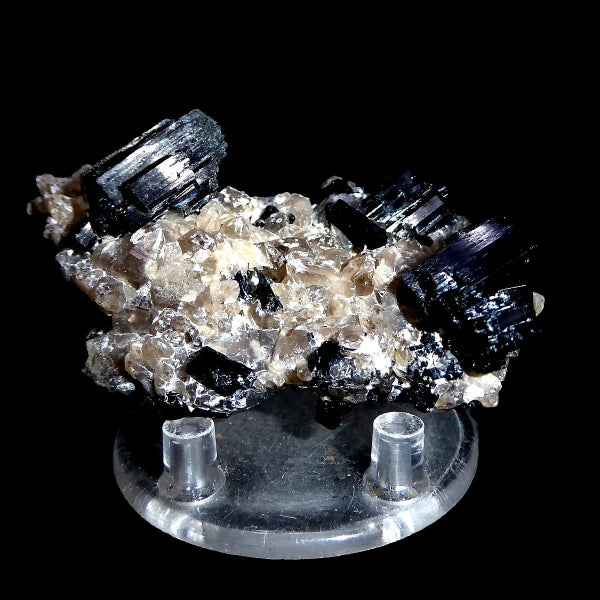 Turmalinas terminadas de color intenso con brillo y formaciones perfectas en matriz de Cuarzo Var. Ahumado. Mineral muy estético de grande calidad