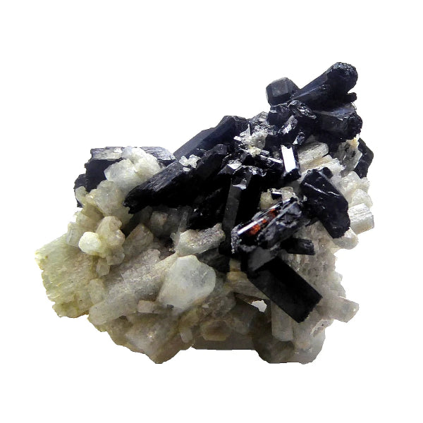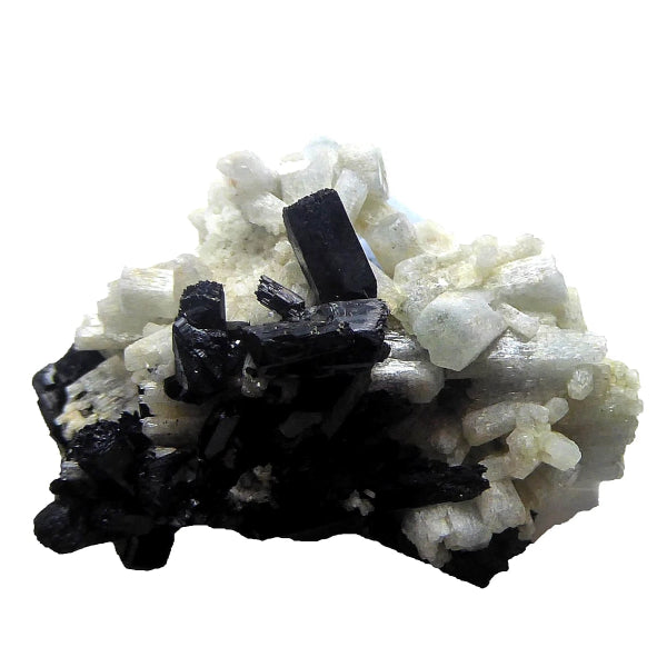 Cristales de Goshenita con bueno color y cristales de Turmalina negra terminados. Mineral muy estético de grande calidad