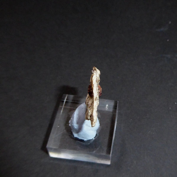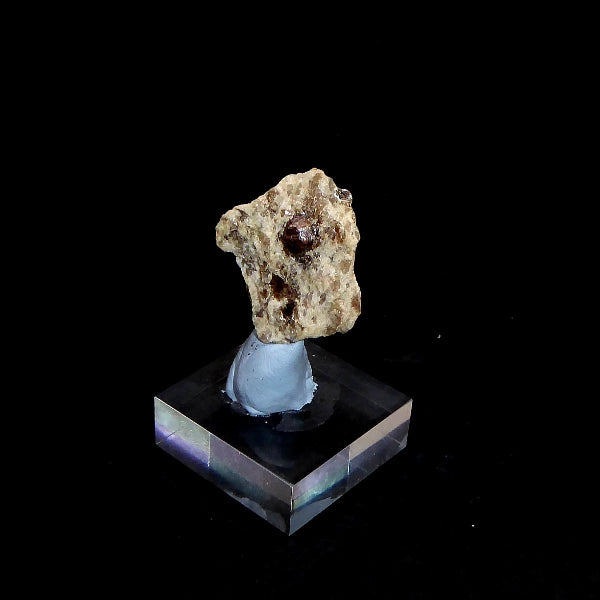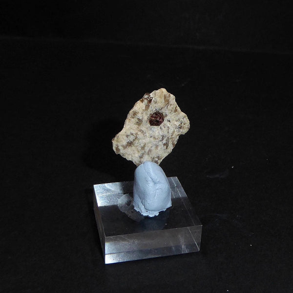 Granate con buena formación y color en matriz. Mineral muy estético. Granate en medio de su matriz con una formación única y muy rara encontrado en 2008. Base usada para fotos no esta incluida