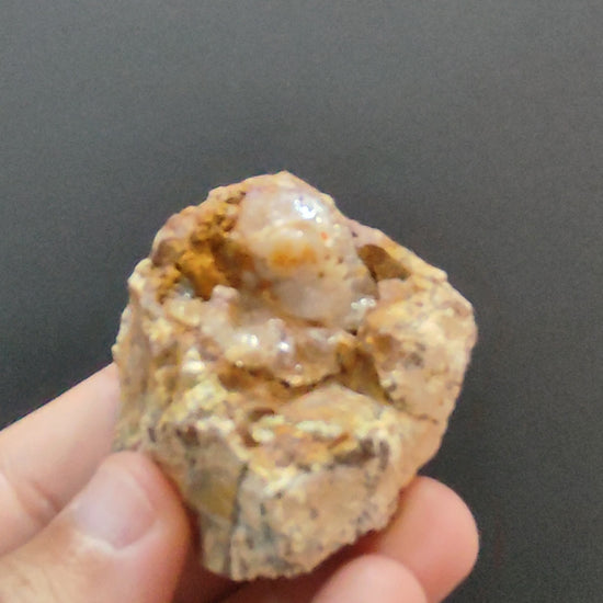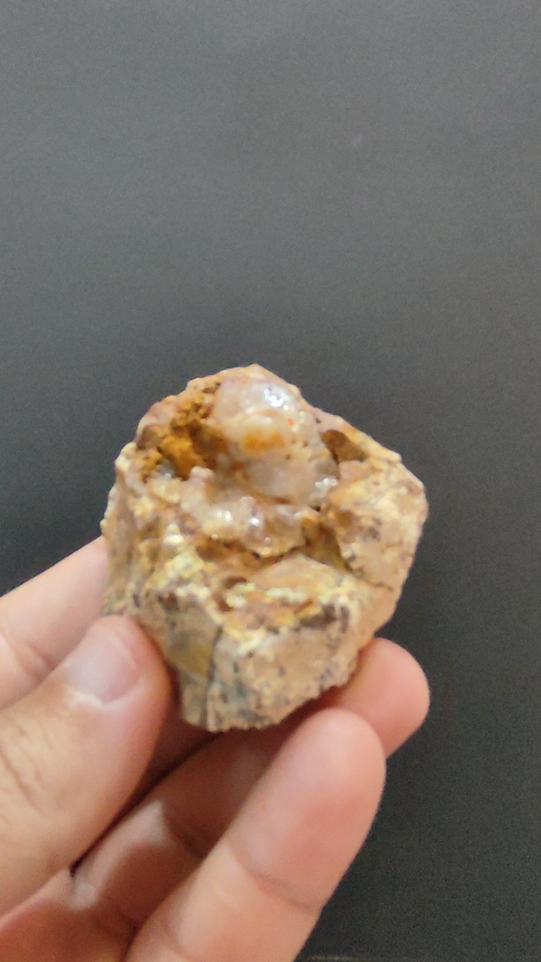 Buenas formaciones de Hialita var.Opalo en matriz con bueno color y brillo en matriz de Riolita. Mineral muy estético. Se pueden ver luminiscencia con U.V. (Luz Ultravioleta