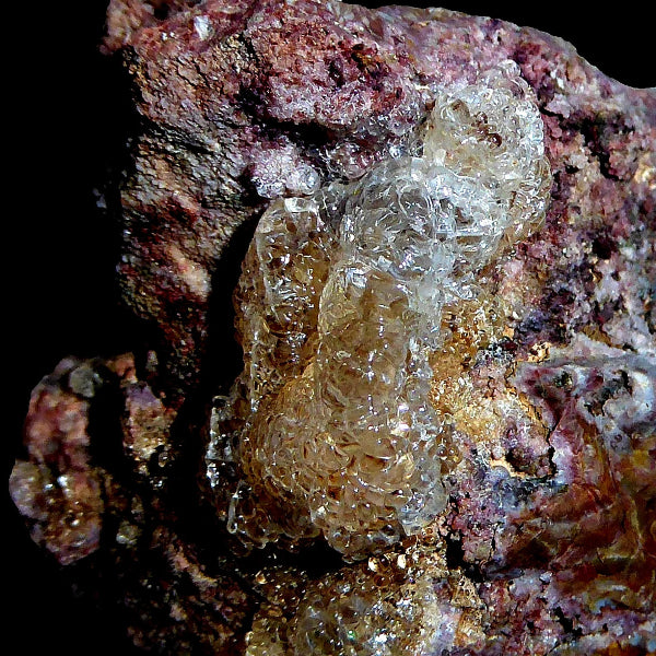 Hialita Var. Ópalo en matriz de Riolita con muy buenas formaciones en matriz. Mineral muy estetico que cambia de color con luz UV - Ultravioleta
