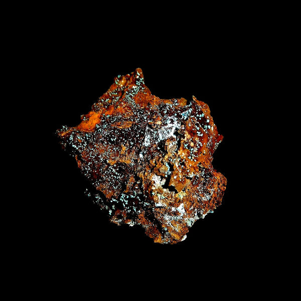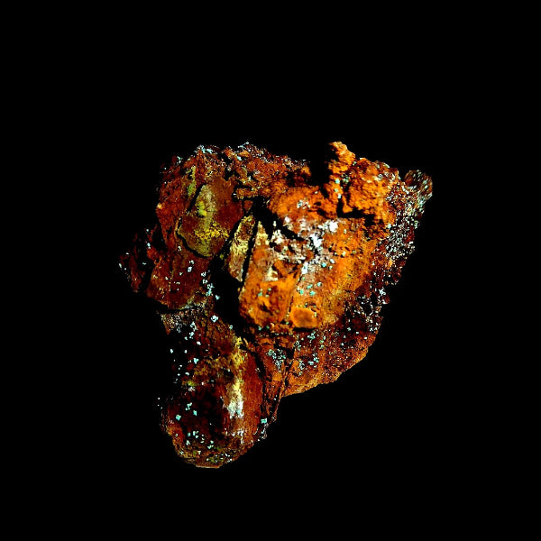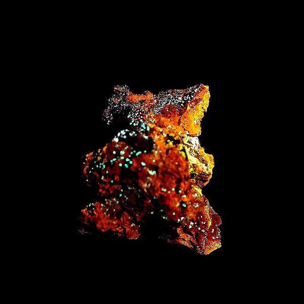 Formaciones de Malaquita PSM Cuprita de color verde con brillo en matriz de color naranja/marrón. Mineral muy estético. Inclui caja acrílico