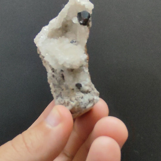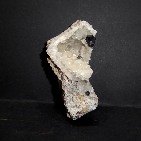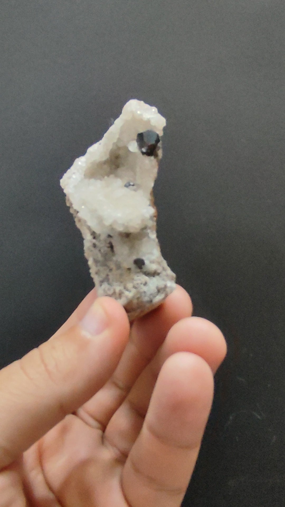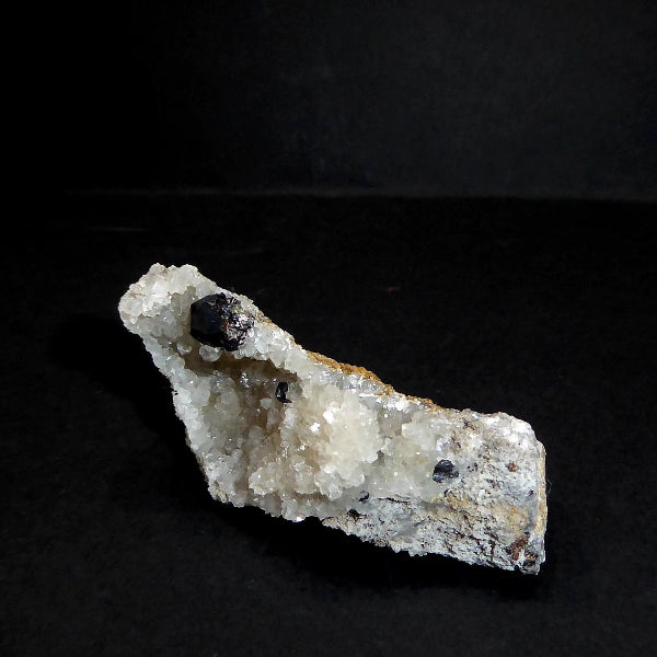 Matriz de Cuarzo con brillo donde se pueden encontrar buenas formaciones de cristales de Esfalerita Var. Marmatita con cristales perfectos de color oscuro con brillo. Mineral muy estetico de grande calida