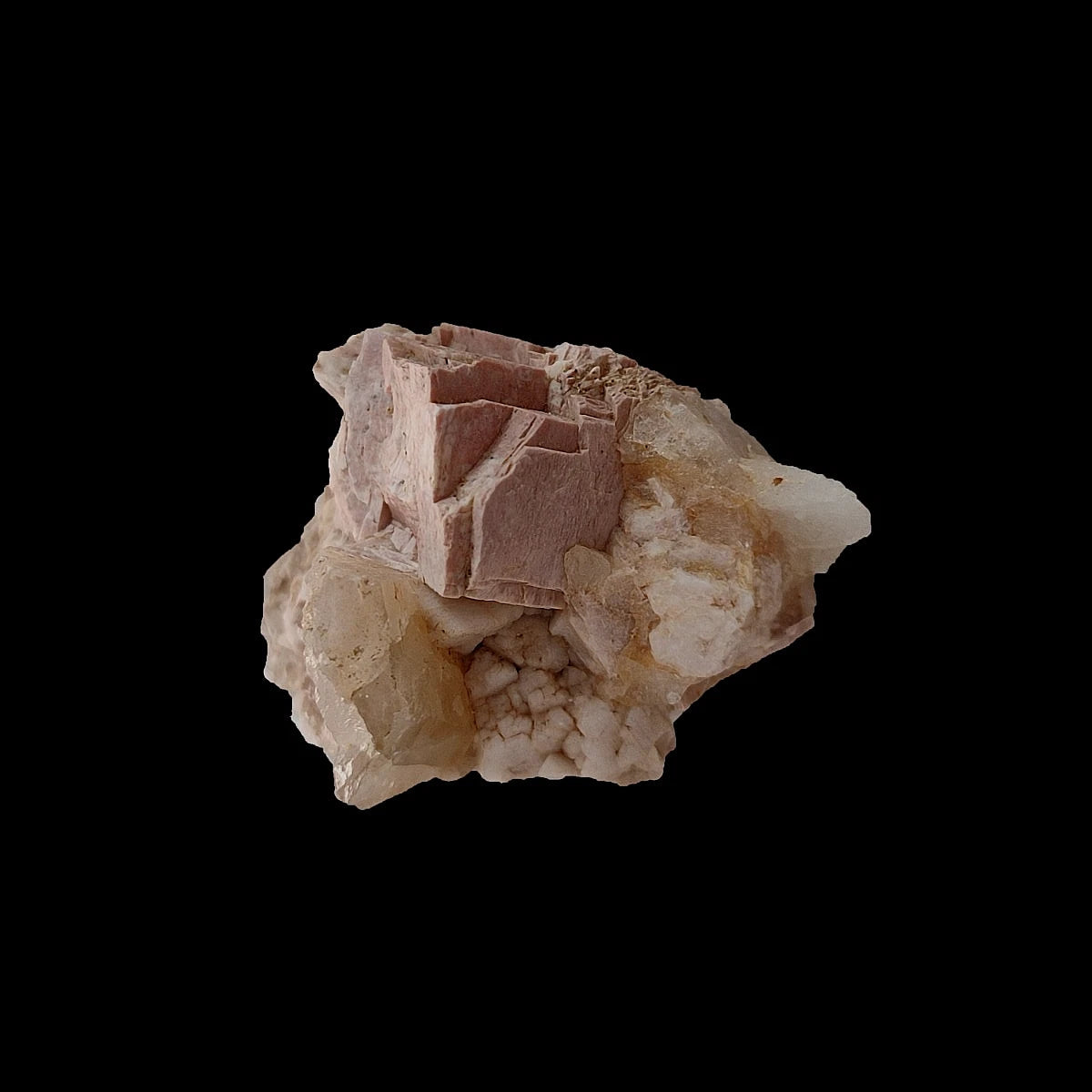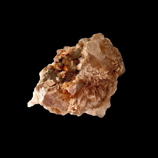 Ortsa de color rosa con Cuarzo con muy buenas formaciones y color intenso con brillo. Mineral muy estético