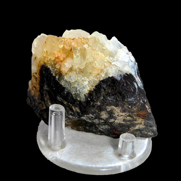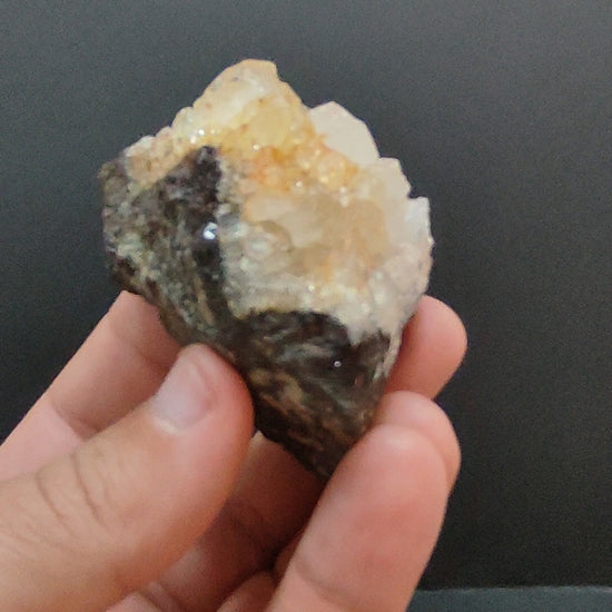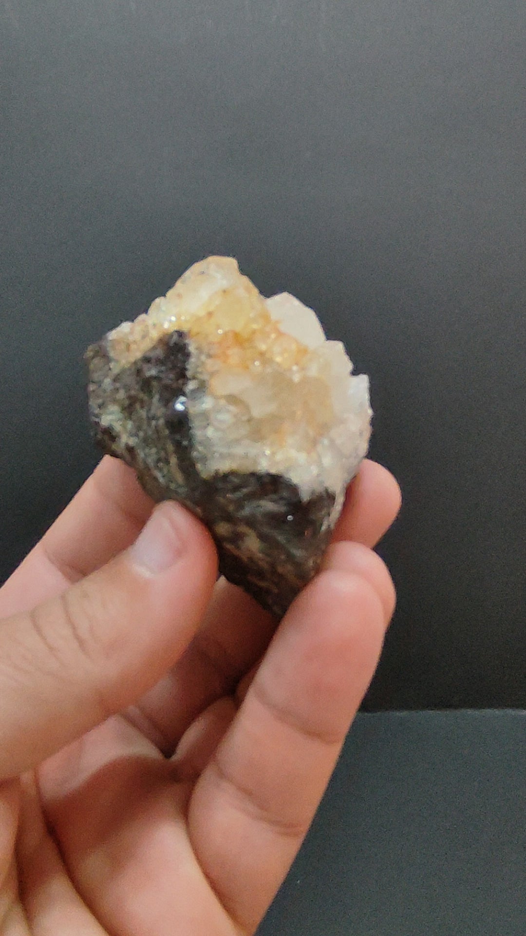 Cuarzo en matriz de Siderita con bueno color y formaciones. Se encuentra formaciones de Cuarzo Var. Citrino en matriz. Soporte no esta incluido
