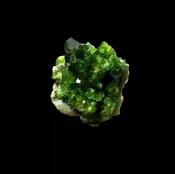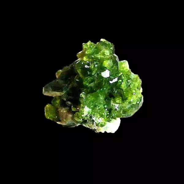 Cristales de Uvita Var. Turmalina con color verde intenso con brillo y perfectas formaciones. Tambien tiene inclusiones de Magnesita de color blanco. Mineral de gran calidad
